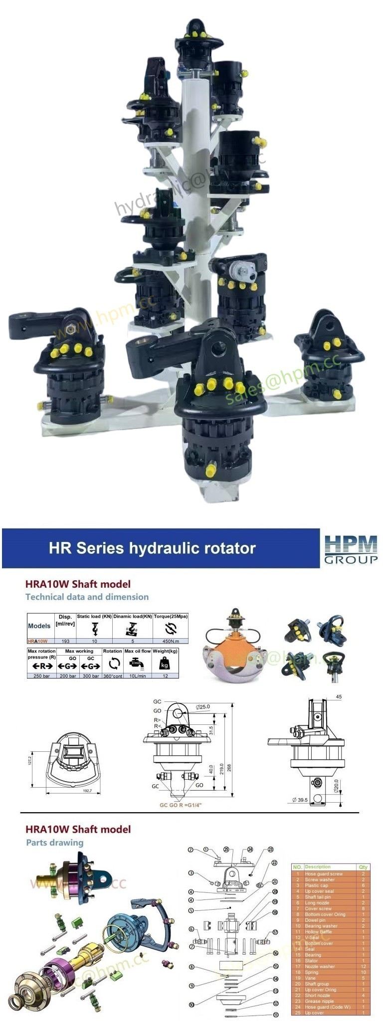 Grab Rotator HRA10W is a compact 1-ton shaft-type hydraulic rotator engineered for forestry cranes, agricultural loaders, truck-mounted cranes, and logging grapples.